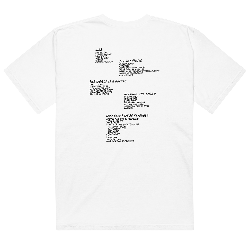 White, unisex t-shirt with The CD Collection (1971-1975) album cover on the front and tracklisting on the reverse.