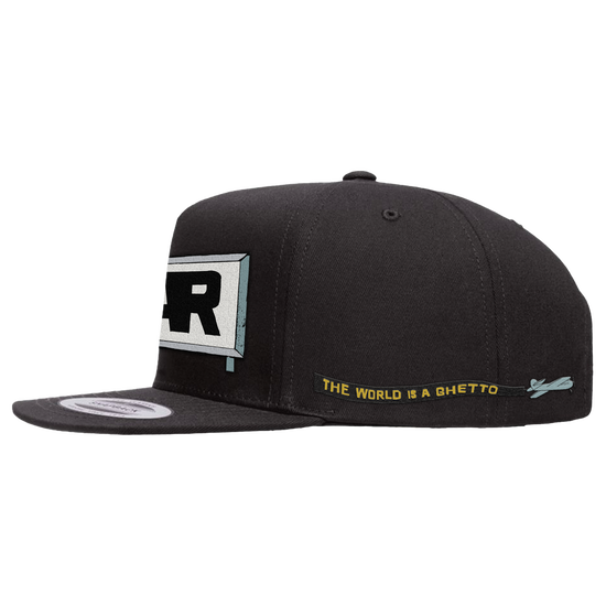 Custom snapback hat features embroidery on the front, back and side of hat.